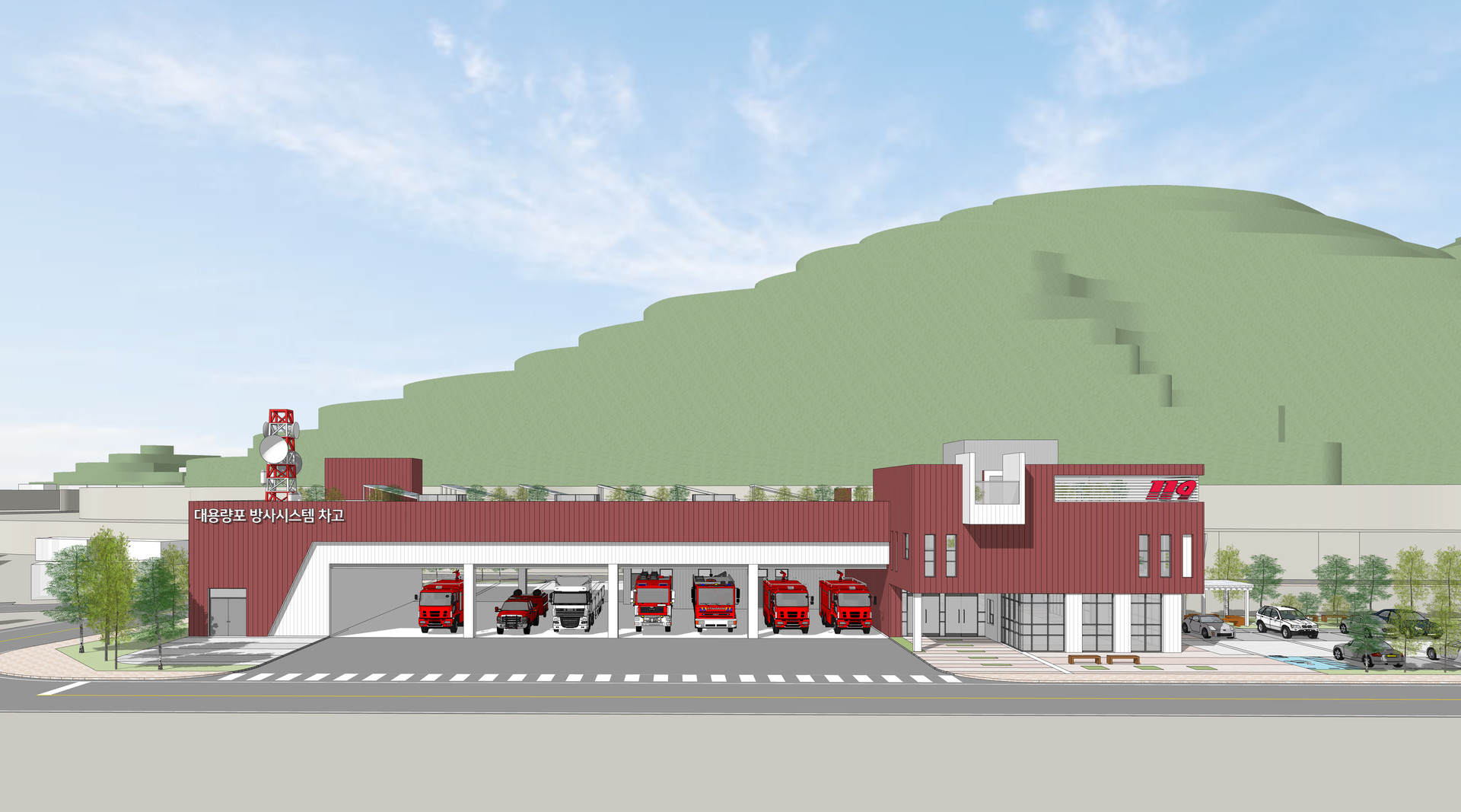 특시 여수화학센터 대용향포 방사시스템 차고는 화학재난 대응의 핵심 인프라로서 여수에 안전의 빛을 비추는 공간,
