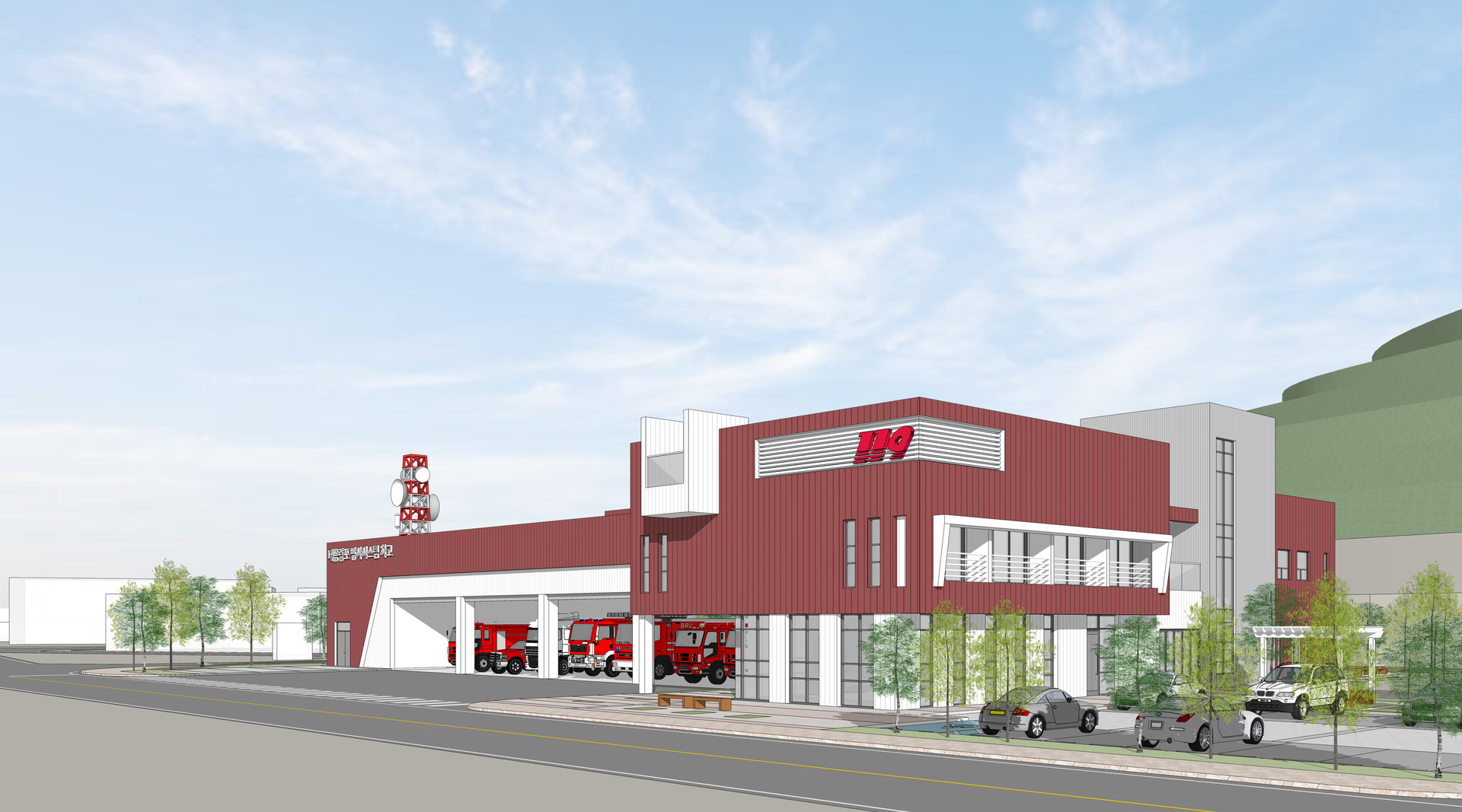 소방차고와 사무 및 휴게, 대기 공간의 독립성을 확보하면서도 유사시 빠른 연계가 가능하게 영역별, 층별 조닝을 계획하였다.